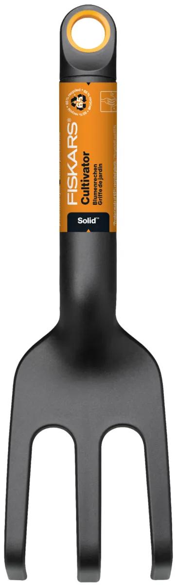 Kultywator do przesadzania Fiskars Solid™ jest wykonany w 65% z tworzywa sztucznego pochodzącego z recyklingu, wzmocnionego włóknem szklanym dla zwiększenia wytrzymałości. Szerokie, zakrzywione zęby idealnie nadają się do spulchniania zbitej gleby i usuwania chwastów z rabat ogrodowych. Odporny na promieniowanie UV. Ergonomiczna rączka zmniejsza zmęczenie dłoni. Praktyczny otwór do zawieszenia ułatwia przechowywanie. Ręczne narzędzia ogrodnicze Fiskars Solid są starannie wykonane, nadają się do recyklingu i charakteryzują się wysoką jakością, są wytrzymałe i wygodne w użyciu.