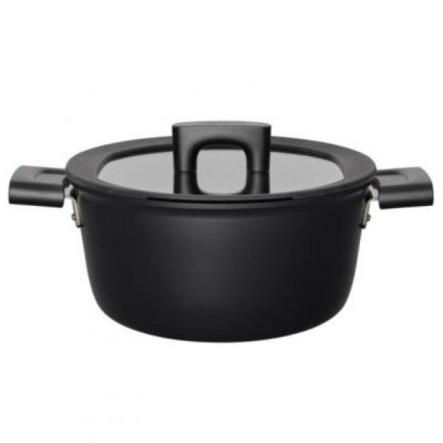 Aluminiowy garnek Fiskars do wymagającego przygotowywania potraw. Właściwości nieprzywierające, powierzchnia Hardtec Superior, bezpieczny uchwyt Bakelite, grubsza podstawa energooszczędna.