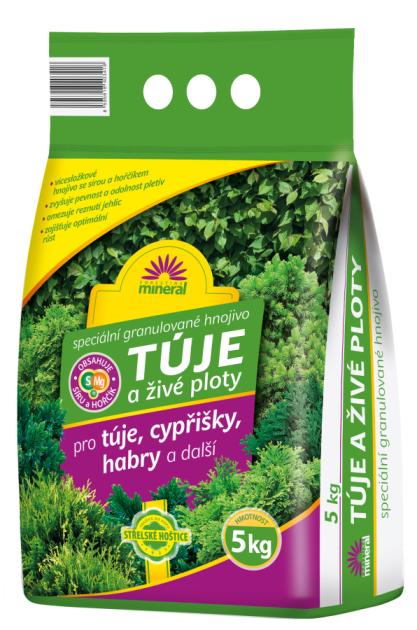 Nawóz do tuj i żywopłotów jest specjalną mieszanką granulowanego wieloskładnikowego nawozu NPK z magnezem i siarką. Nawóz nadaje się do odżywiania żywopłotów z tuj, cyprysów, grabów itp.