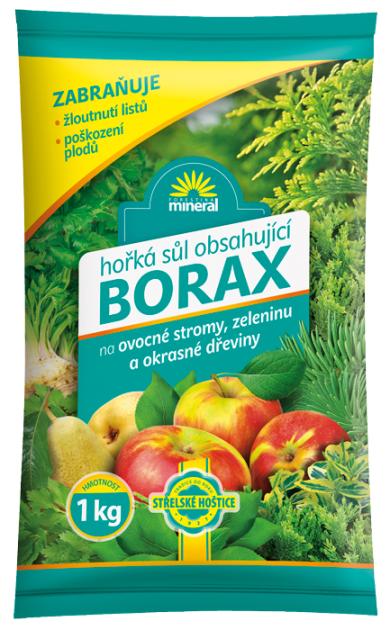 Horká soľ s Boraxom sa používa ako hnojivo určené na odstránenie nedostatočnej výživy plodín a stromov bórom a horčíkom. Bór ovplyvňuje významne klíčivosť peľu a je dôležitý prvok výživy, ovplyvňuje vývin letorastov a odolnosť rastlín voči hubovitým chorobám. Nedostatok bóru spôsobuje srdiečkovú hnilobu u repy, cukrovky, poškodenie buliev zeleru. Neostatok bôru u rastlín spôsobuje srdiečkovú hnilobu u repy, cukrovky, poškodenie buliev zeleru, horkou pehovitosťou plodov jabĺk, u hrušiek kamenitosťou a menšia odolonsť voči hubovým chorobám. Pri nedostatku horčíka nedosahujú rastliny dobrých výnosov ani výbornú kvalitu, listová zeleň nie je dostatočne sýta, listy žltnú a neskôr až hnednú a rastliny chradnú.