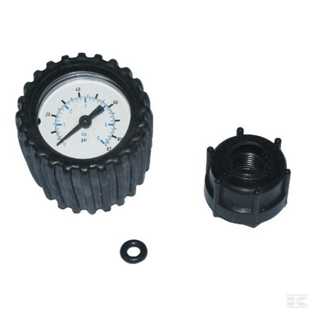 Manometr do 10 barów z przyłączami. do kontroli ciśnienia oprysku. Można precyzyjnie wykonać oprysk przy żądanym ciśnieniu.