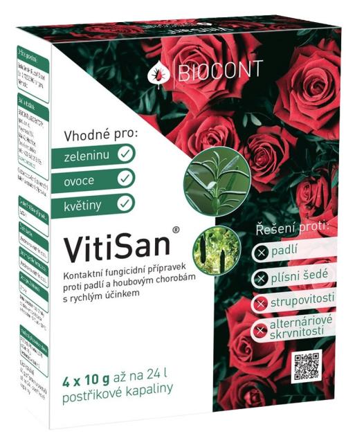 Kolejny produkt zwiększający odporność roślin na mączniaka rzekomego i szarą pleśń na winoroślach, mączniaka rzekomego i parcha na ziarnach, mączniaka rzekomego na warzywach i różach.Vitasan to produkt zwiększający odporność na choroby grzybowe.Vitasan tworzy na powierzchni liści film ochronny ograniczający wnikanie i rozwój grzybów.Mechanizm działania polega na tym, że wodorowęglan potasu działa toksycznie na komórki grzybów poprzez łączne działanie alkalicznego pH, ciśnienia osmotycznego i specyficznych interakcji węglan/wodorowęglan/ ograniczając w ten sposób rozwój grzybowych grzybni.