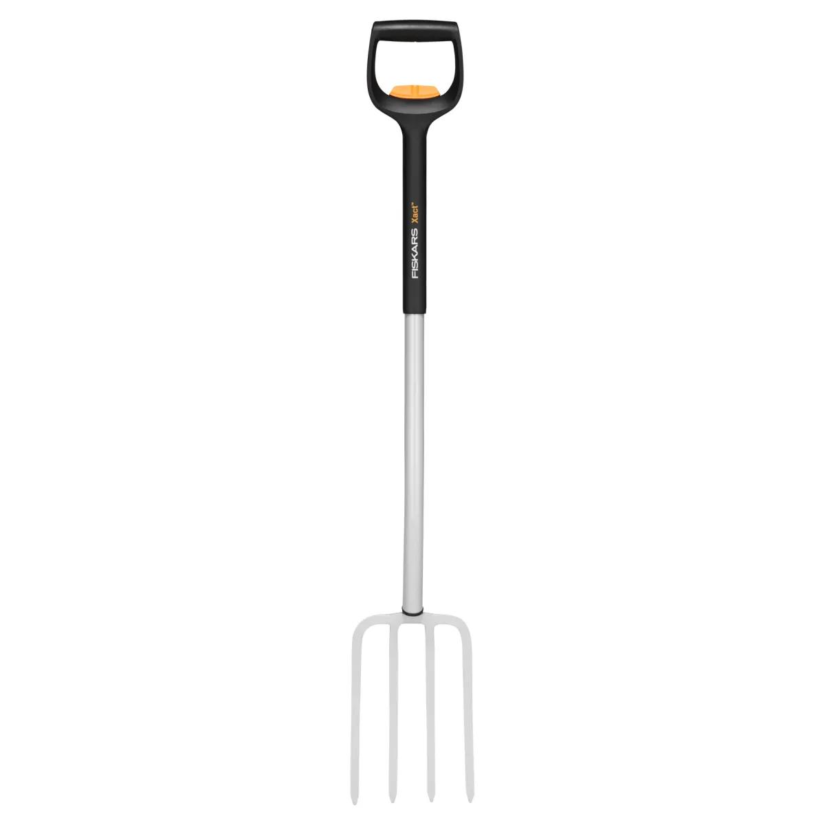 Vidle FISKARS XACT sú vhodné na rytie a obracanie zhutnenej pôdy, pre pohodlné premiestňovanie mačiny, sadenie, prevzdušňovanie trávnika, vyhrabávanie kameňov a buriny. Hroty ľahko prenikajú do zeme, cez kamene, burinu či korene. S teleskopickou násadou, ktorú je možné predĺžiť v rozsahu 110-130 cm. Sú mimoriadne odolné a zároveň ľahké prevedenie. Čepeľ a násada sú zahnuté tak, aby vaše telo zostalo v prirodzenej polohe a znižovala sa tak námaha pri práci. Držadlo v tvare písmena D je vhodné pre všetky veľkosti rúk, v rukaviciach aj bez nich.